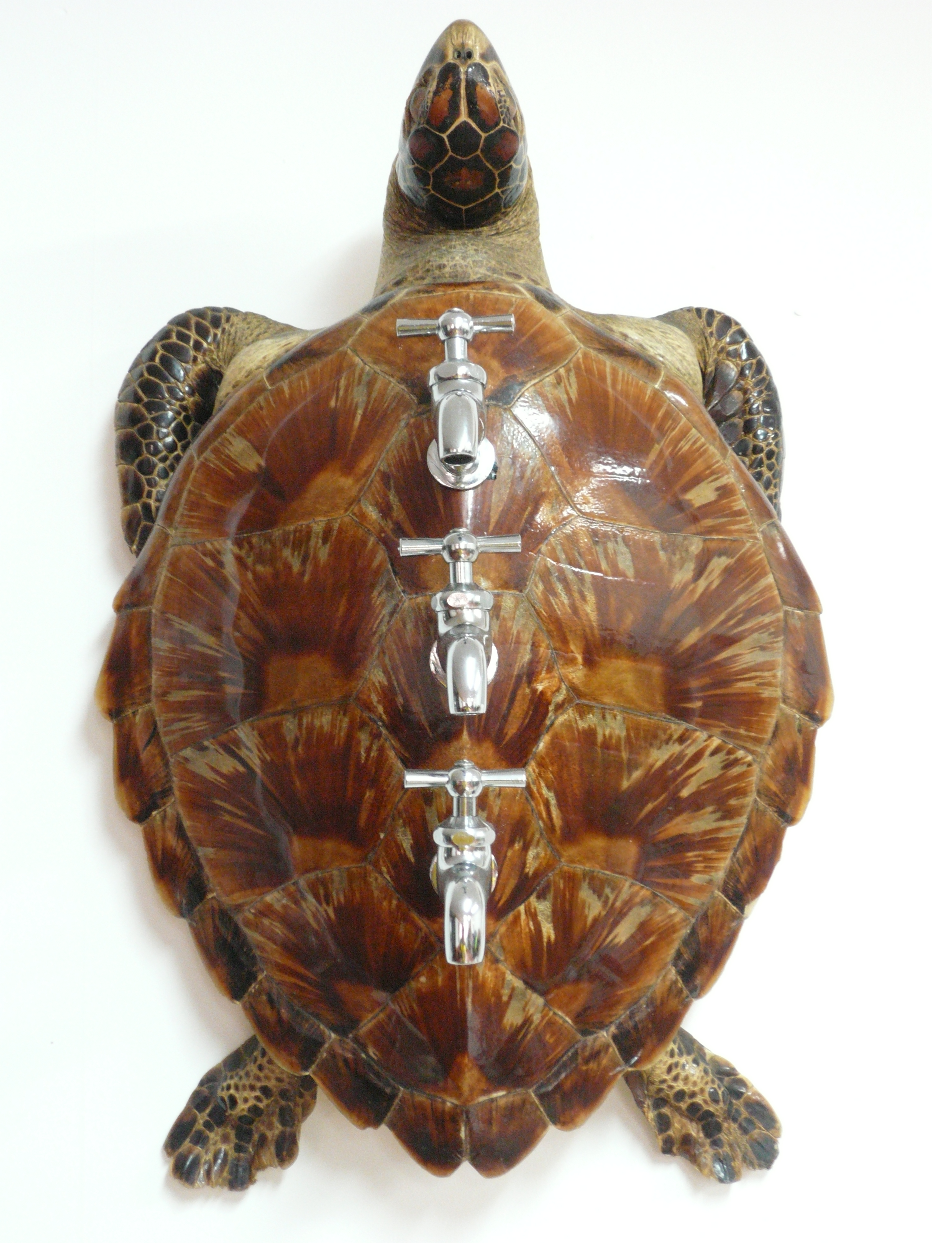 어떤 작업을 반복이라고 부르는가 수집 혹은 분류작업이라고 부르는가 하는 것은 사소한 일처럼 보이지만 그렇지 않다. 반복이라고 할 경우 같은 것이 되풀이된다는 방식 그 자체에 대한 관심이 일차적인 것이고, 반복되는 사물이 무엇인가에 대한 관심은 이차적인 것으로 밀려나게 된다. 물론 반복의 방식 그 자체가 서두에서 이야기한 것처럼 문화의 어떤 ‘기계적 속성’을 표현하기 위해 사용되는 경우 구조적 관심이 없다고는 할 수 없지만, 이런 식의 기법은 앤디 워홀 이래 이미 무수한 작가들이 사용한 방법으로 그 클리세적 속성에서 벗어나기는 쉽지 않다. 다시 말하면, 단지 ‘같다’라는 것만으로는 생산적인 의미를 담아내기 어려운 시대인 것이다. 강태훈의 작업도 그런 차원에서 해석해서는 큰 의미가 없다. 오히려, 이 작가의 작업에서 주목해야 할 부분은, 모든 사물에 수도꼭지를 붙였다는 차원이 아니라 그 어떤 사물들을 선택해서 수도꼭지를 붙였는가 하는 차원일 수도 있는 것이다. 사실, 구체적인 사물과 보이지 않는 구조 간의 관계는 겉보기보다 일방적이지 않다. 나는 오히려 작가가 선택한 사물들, 특정한 책, 그림, 동물박제, 구명대...같은 것이 개별적으로 갖고 있는 성격의 차원에 주목하고 싶다. 물론 이 말은 작가가 실제로 이 사물들에 일일이 의미를 붙여 선택했다는 뜻이 아니다. 의미가 있어야 한다는 뜻도 아니다. 오히려 이 개별 사물들은 일일이 의미가 없기 때문에 오히려 작업 속에 적절히 배치될 수 있는 것들이다. 하지만 이 개별 사물의 ‘무의미’는 역설적으로 그것을 선택한 작가 자신의 ‘어떤 것’을 표현해줄 수도 있다. 말하자면 그것은 징후적인 차원으로, 이 작업 속에서 작가의 자리를 표시해줄 수도 있는 것이다. 그리고 이런 표시 행위(혹은 그에 대한 인지)는 작업에 좀 더 풍부한 암묵적 텍스트를 부여할 수도 있다.